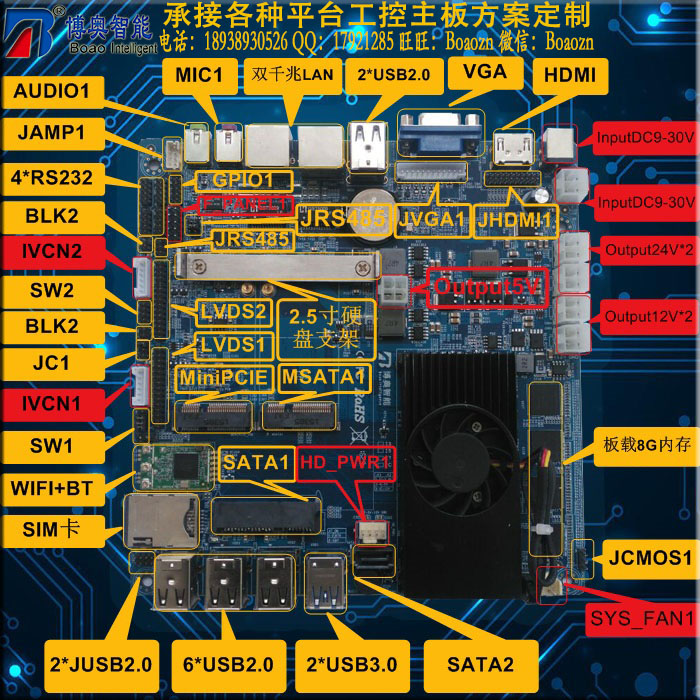 1個半長/全長Mini-PCIe 1x插槽,支持PCIe和USB設備支持USB 3G/4G通訊模塊