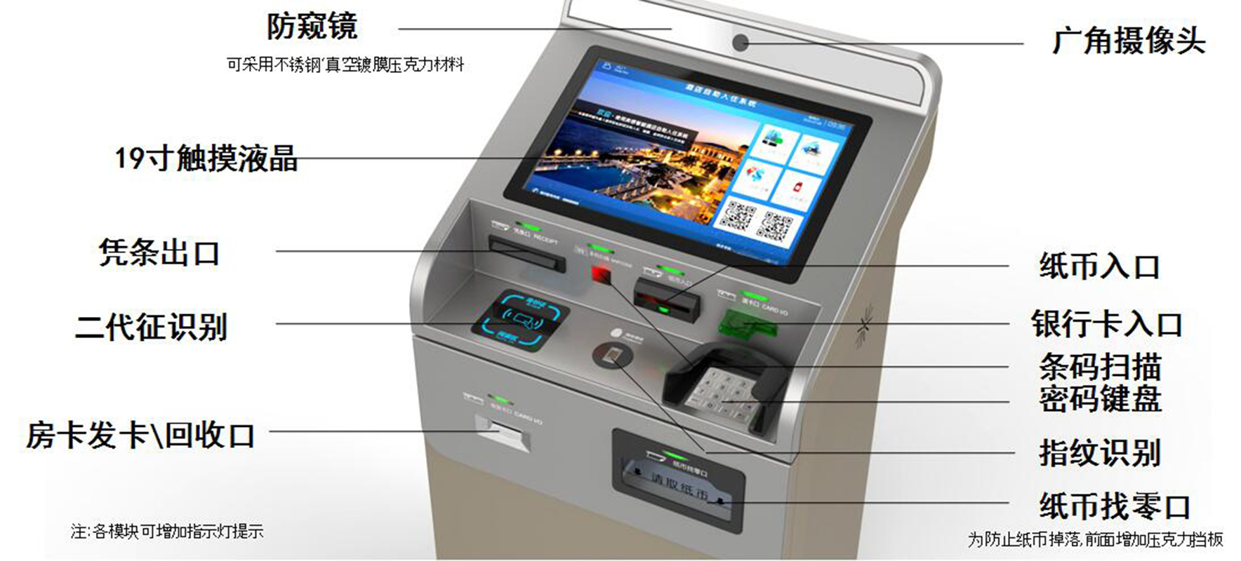 ? ? ? ?酒店自助入住機是一種無人值守、操作簡單、查詢方便快捷的人機交互設備。?客人可以通過自助入住設備自助開房,退房,結賬離店。達到提高顧客辦事效率、節(jié)約時間,時間節(jié)約酒店運營成本、提高服務質量的目的。其具有服務完整性、可視性、系統(tǒng)化和可維護性,是酒店自動化處理業(yè)務的有效保證