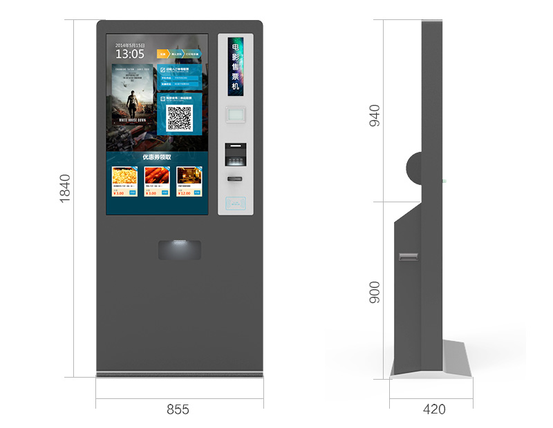 影院自助售取票終端是根據目前電影市場的需求,定制針對電影院線的一系列售票、取票解決方案.基于對行業的理解和沉淀,影院自助售取票終端可實現線上和線下的互動,支持取票、購票、賬戶查詢、注冊、充值、電影預覽、廣告精準投放、禮品售賣或發放等功能,通過強大的云后臺管理系統,運營商可對所有終端設備進行實時監控,降低運營成本。