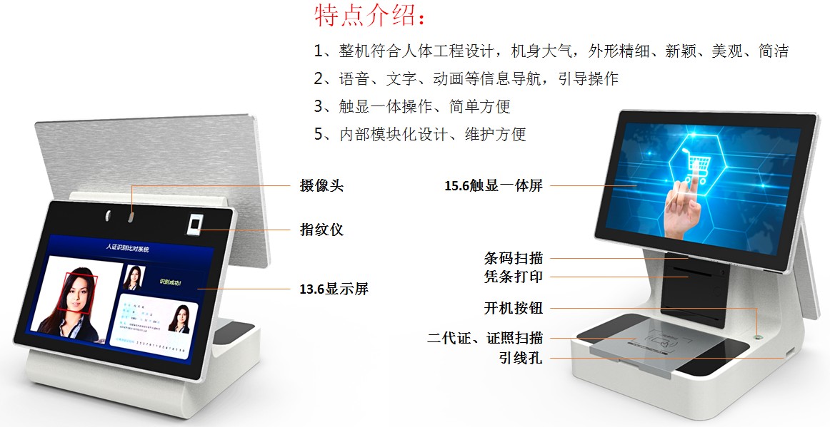 BA-FK0A訪客機套件是博奧智能針對政府機關、軍隊、公安、法院、學校、事業單位、花園小區、高檔寫字樓、工廠等門衛傳達室設計加工的設備, 外殼套件包含15.6屏、13.3屏、15.5觸摸屏、15.6鋁合金屏框、13.3鋁合金屏框、掃掃描儀蓋、鈑金座墊、攝影頭、亞克力蓋板等整機符合人體工程設計,機身小巧,外形新穎、美觀、簡潔,內部模塊化設計、維護方便;采用多點電容觸摸屏設計,點擊靈敏、操作方便,支持雙屏同步顯示和異步顯示,集成證件OCR掃描識別、身份證讀取,IC卡讀寫、人臉抓拍比對、指紋采集比對、條碼掃描、訪客單打印等功能