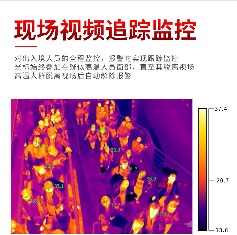 (2)高靈敏度紅外熱成像24小時監控與監測,并將溫度信息可視化呈現
