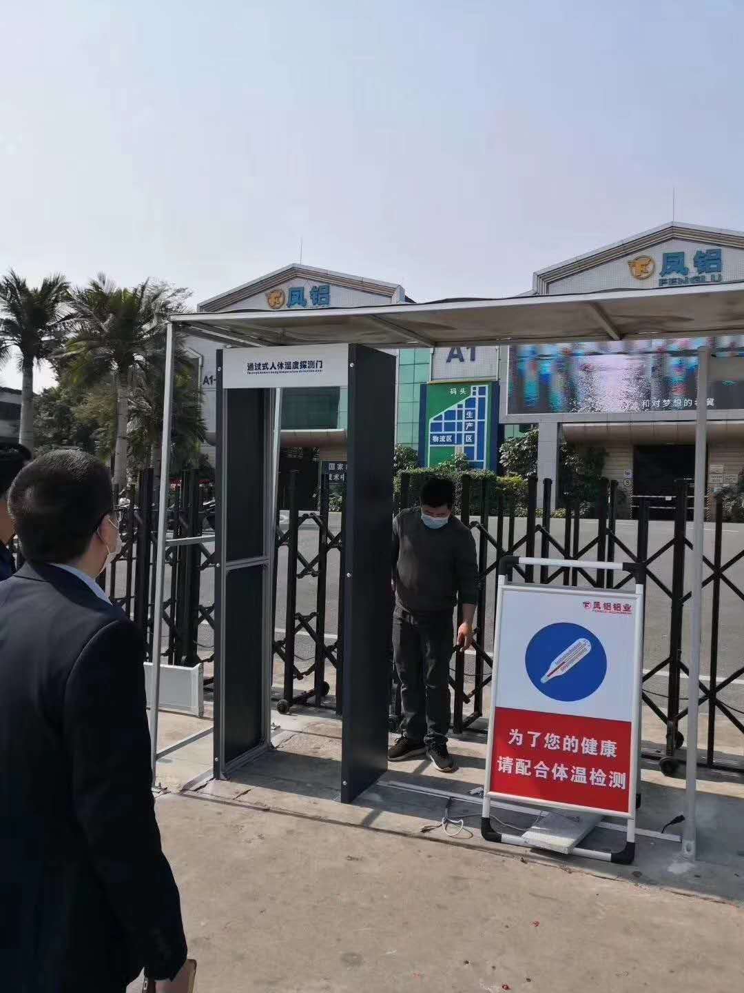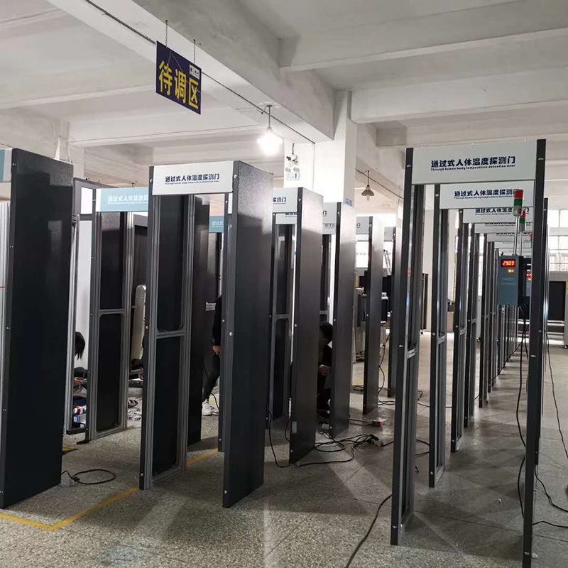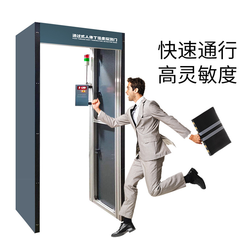 體溫檢測門采用高精度紅外測溫傳感器,感應距離可達0.5-1米,具有高精度和高分辨率,對環境和日光免疫。室溫下測量誤差±0.5℃,分辨率為0.02℃。初始溫度設定值為37.3℃(可調節),檢測門工作時顯示檢測出的人體實際體溫,超過37.3℃即報警,無人通過時顯示場地環境溫度。
