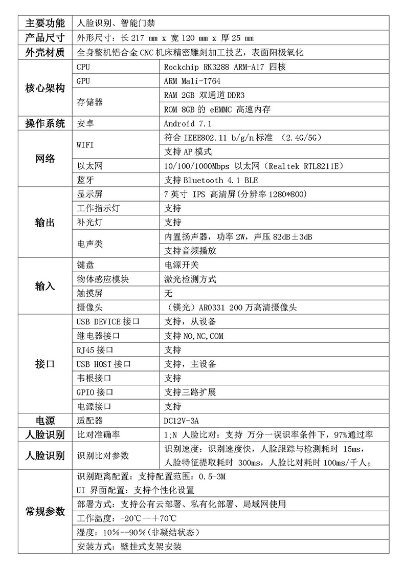 · 算法品牌:曠視,集成其算法核心引擎開發的人臉識別APP(可選配置)