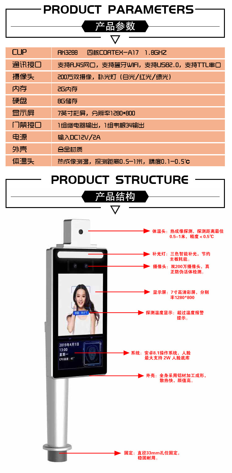 產(chǎn)品名稱:人臉識(shí)別自動(dòng)測(cè)溫一體閘機(jī)聯(lián)動(dòng)方案
