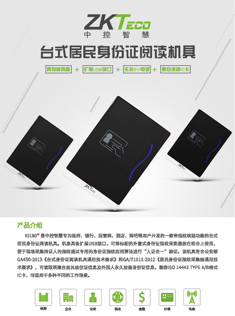 中控ID180臺(tái)式居民身份證閱讀器IC卡讀寫(xiě)器