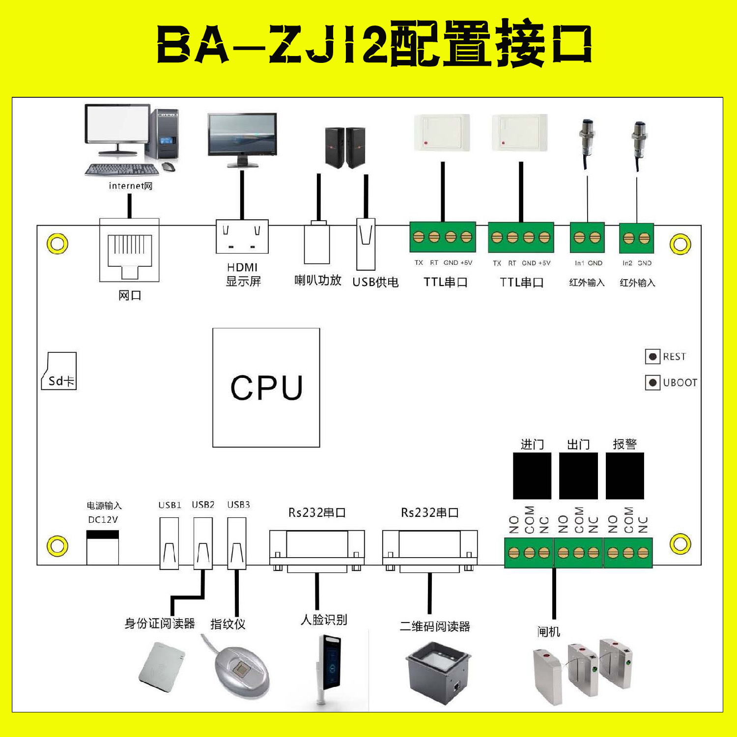 支持功能:通道閘機(jī)門禁人臉識(shí)別指紋采集條碼掃描身份證讀卡器HDMI顯示紅外感應(yīng)TP/IP