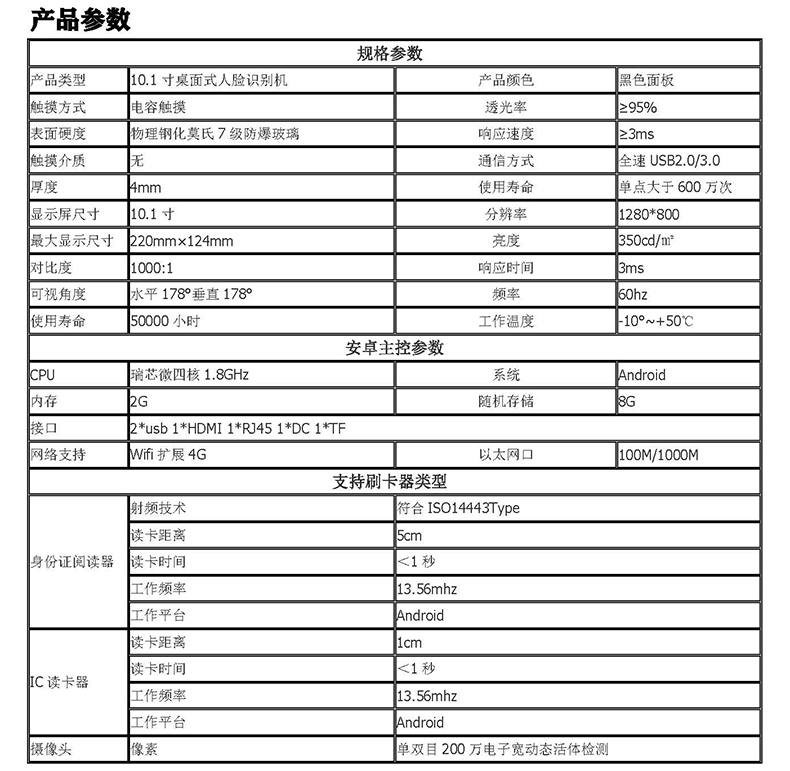 功能配置:身份證讀卡器 IC卡讀寫(xiě)器 200萬(wàn)雙目攝像頭