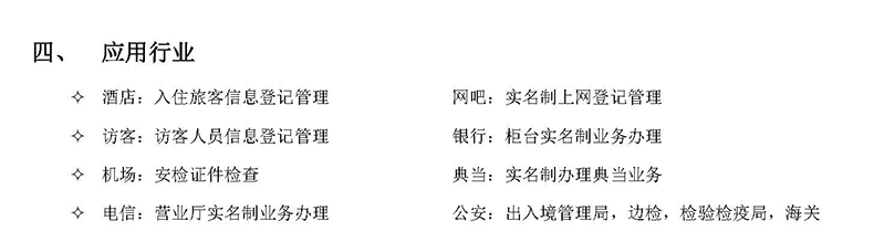 4) 識讀種證種類多而全:可識讀符合國際民航組織ICAO DOC 9303國際標(biāo)準(zhǔn)的電子護(hù)照、電子回鄉(xiāng)證、電子臺胞證等多種國內(nèi)外的旅行證件;還可以識別身份證、駕駛證、行駛證、港澳通行證、臺灣通行證等幾十種身份證件;