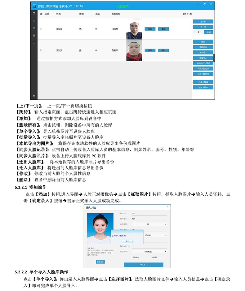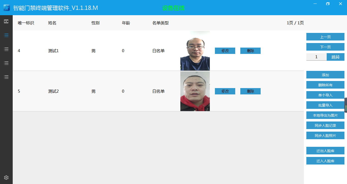 ??? 用戶可以在此界面,可對(duì)人臉庫(kù)執(zhí)行加、減、刪、查、改,導(dǎo)出,遷入等操作。