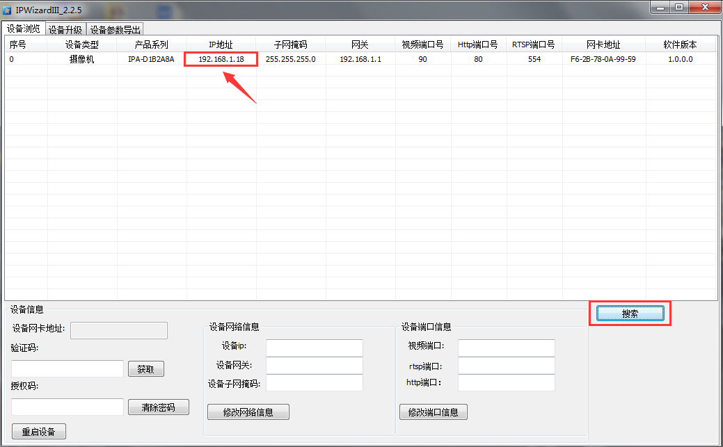 通過(guò)網(wǎng)線將設(shè)備正確連接到PC電腦;設(shè)備上電后,在電腦打開(kāi)搜索工具,搜索設(shè)備IP地址。同時(shí)也可通過(guò)工具修改設(shè)備IP地址。