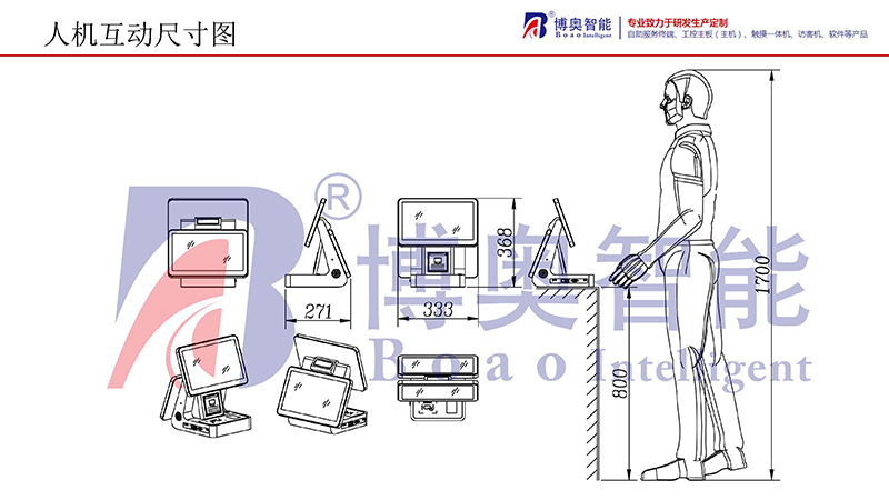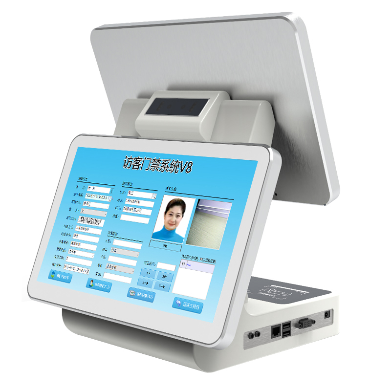 BA-FK13A訪客機是博奧智能針對政府機關、軍隊、公安、法院、學校、事業單位、花園小區、高檔寫字樓、工廠等門衛傳達室設計加工的一款進出人員信息化登記設備, 從而代替了傳統的手工登記,有效的提高了門衛管理工作效率及證件信息登記準確性, 為日后的信息查詢工作更方便量更快捷。整機采用流線性設計,符合人體工程原理,結構合理,外形美觀大方,操作簡單,維護方便;內部采用模塊化設計,集成13.3寸電容觸顯一體屏和13.3寸液晶屏、身份證閱讀器,IC卡讀寫器、雙目寬動態高清攝像頭、條碼掃描儀、熱敏打印機及熱成像測溫等模塊。