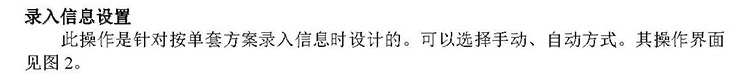 此操作是針對按單套方案錄入信息時設計的。可以選擇手動、自動方式。其操作界面見圖2。