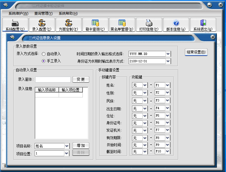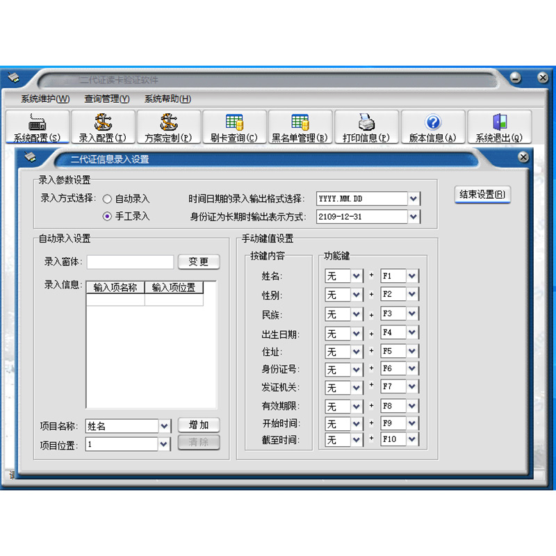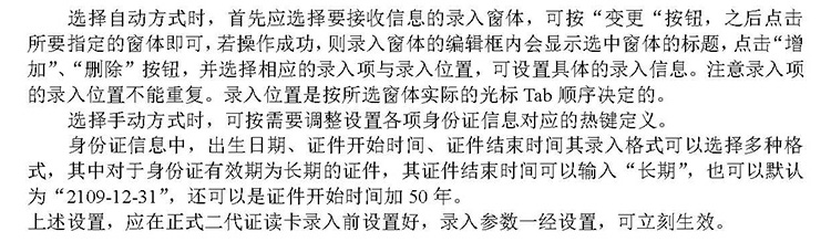 所謂手動錄入就是讀取二代證信息后,可按在相關應用程序的窗體中按預先定義的熱鍵通過鍵盤錄入所設置的信息。