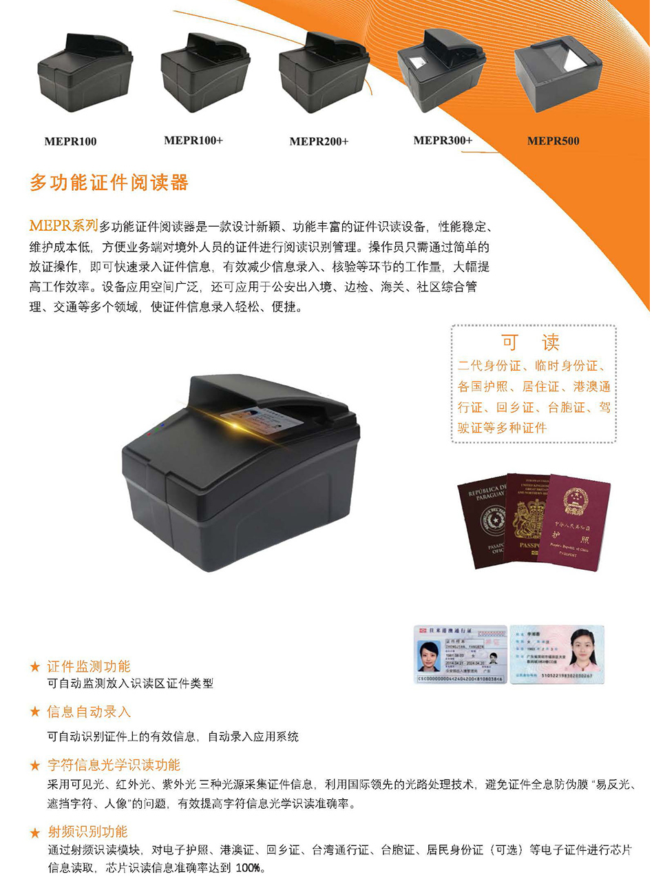 主要用于檢測和識別各種旅行證件,如護照、電子護照、簽證、外國駕照、電子港澳通行證、往來臺灣通行證、臺胞證、回鄉(xiāng)證、身份證、居住證等,其它可選功能包括:
