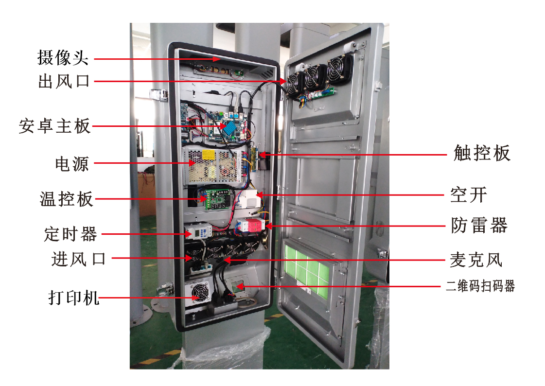 l? 內(nèi)部結(jié)構(gòu)按要求設(shè)計(jì)進(jìn)行加強(qiáng)筋加固,整機(jī)結(jié)構(gòu)牢固性可抗12級(jí)臺(tái)風(fēng),機(jī)器材質(zhì)采用冷軋板,噴漆工藝采用雙層噴戶(hù)外粉,外觀(guān)采用新穎設(shè)計(jì),可定制外觀(guān),機(jī)器固定采用壁掛和落地式二用安裝方式,分別采取前開(kāi)門(mén)和后開(kāi)門(mén)進(jìn)行維護(hù)設(shè)計(jì)。