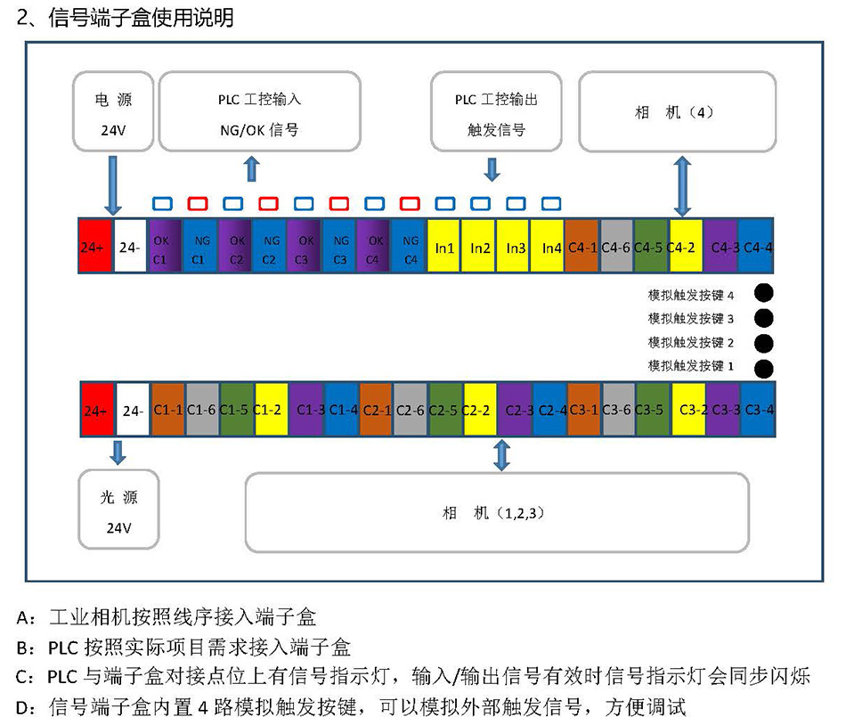 ??? 應用到各行各業工業自動化設備上,可以接視頻系統、PLC、電源、光源等引線。