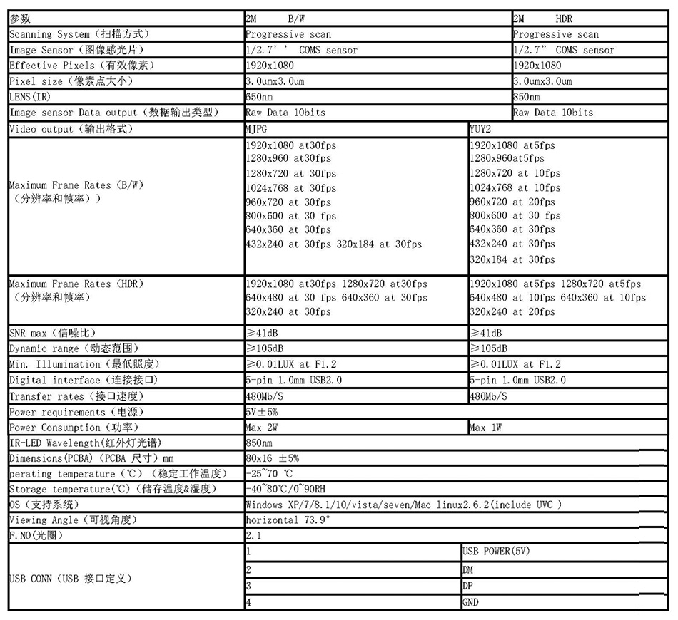 寬動態雙目攝像頭是一款集可見光、近紅外人臉采集于一體,擁有200W+200W 像素,集成了加密芯片的一款高性能人臉識別模組。可實現人臉模板采集、人臉比對等功能。支持標準的USB 通訊方式,體積小巧,主板與近紅外補光燈板一體化設計,使它能靈活嵌入至各類終端設備,支持 Windows、Android、Linux 系統二次開發集成;同時我公司面向客戶需求定制開發各種設備使用的攝像頭。