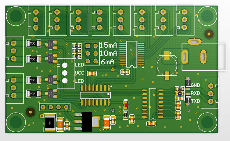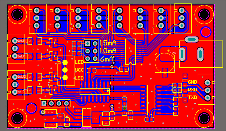 ? ? ? ?目前市場上所用終端機都是非標產品以定制為主,終端機數量不多,多則幾百臺,少則一兩臺,因此終端機廠家面臨一些配件采購難的窘境,單獨投入開發又不劃算,比如指示燈控制板;博奧智能針對此窘境為了終端機廠家方便采購,開發了一款12路RS232串口控制板,主要控制LED指標燈,此款產品可以控制雙色LED指示燈,性能穩定,體積小,方便安裝;可以應用到各種自助終端機上,免費提供指令集及技術支持,博奧智能根據客戶需求免費提供定制服務。