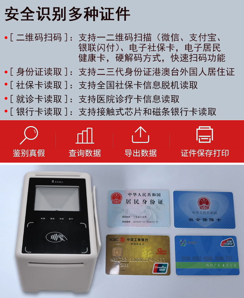 支持: 電子醫保憑證掃描類型: 多功能識讀儀可用于: 疫苗/醫療/社保系統
