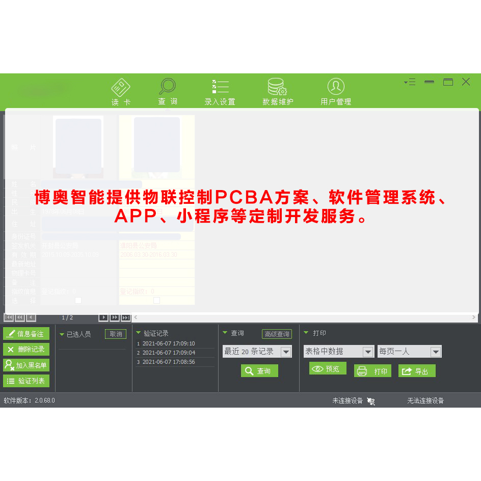簡易版訪客登記管理軟件主要用在學校、機關、工廠、小區、寫字樓、辦公室、展會、防疫等場所用來對人員進行登記保存,以便查詢,相對于訪客登記系統價格實惠,博奧智能提供物聯控制PCBA方案、軟件管理系統、APP、小程序等定制開發服務。