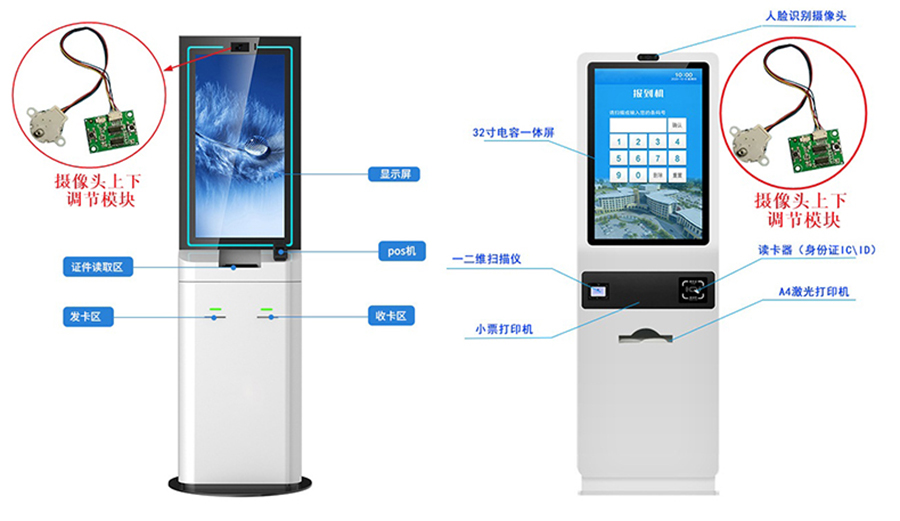 自助終端機(jī)定制:定制各種場景各種款式非標(biāo)終端機(jī);例如訪客機(jī)、景區(qū)自助取票機(jī)、醫(yī)院繳費查詢機(jī)、醫(yī)院自助取單機(jī)、社保查詢機(jī)、室內(nèi)外廣告機(jī)、排隊叫號機(jī)、工控一體機(jī)、電力繳費查詢機(jī)、圖書自助銷售機(jī)、便攜式計算機(jī)、酒店自助入住機(jī)、自助收銀機(jī)等終端。