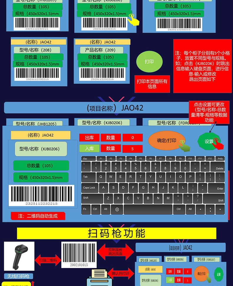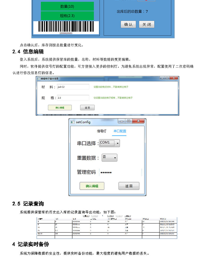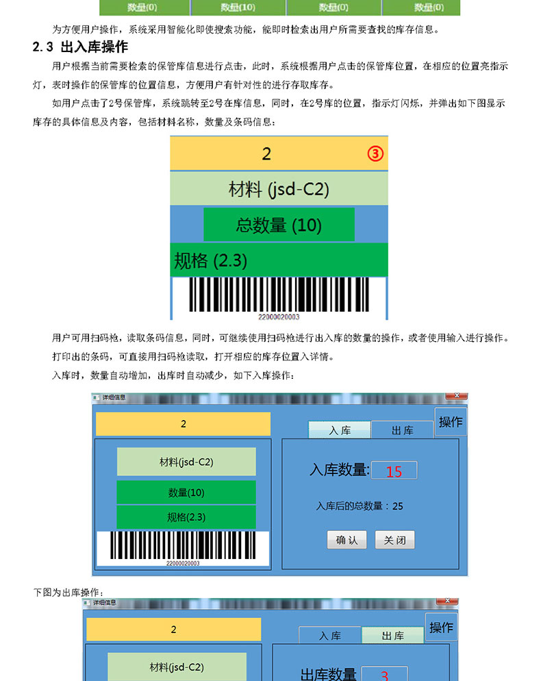 1、可通過(guò)掃碼槍?zhuān)瑨呙钘l形碼,同時(shí)找到保管庫(kù)位置,并使指示燈閃爍,同時(shí),也可使用掃碼槍增減出入庫(kù)的數(shù)量信息。