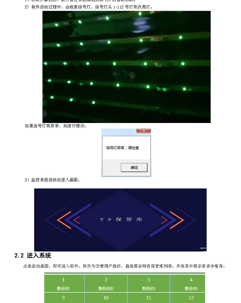 4、軟件控制信號(hào)燈進(jìn)行位置定位,存取方便。對(duì)信號(hào)燈的控制,做到一庫(kù)一燈,使用時(shí)閃爍,不使用時(shí)關(guān)閉的智能控制。