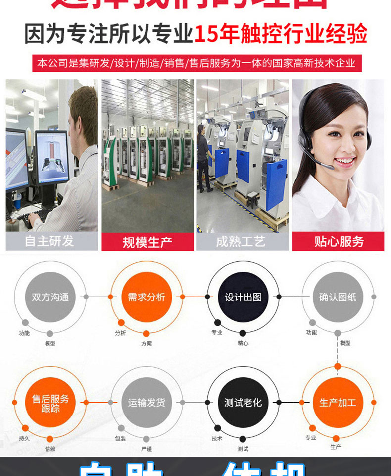 一站式解決方案供應商,來圖來樣加工快速出樣品,提供相關硬件SDK協助開發;專注觸控產品的設計生產,擁有十年設計經驗工程師、技術工程、生產管理人員,以高效品質服務客戶;從供應商的管理,配件的選型,工藝流程的管理各個環節都嚴格把關,通過建立自己的產品質量標準并嚴格執行,確保產品質量可靠;體驗流暢。