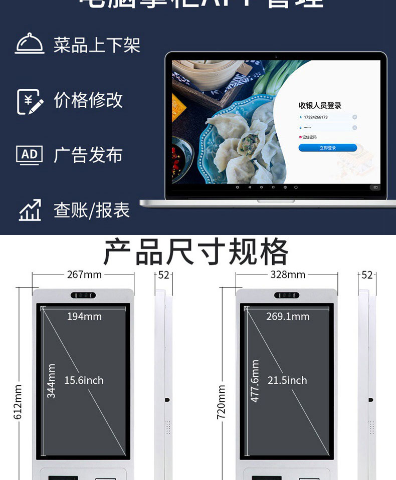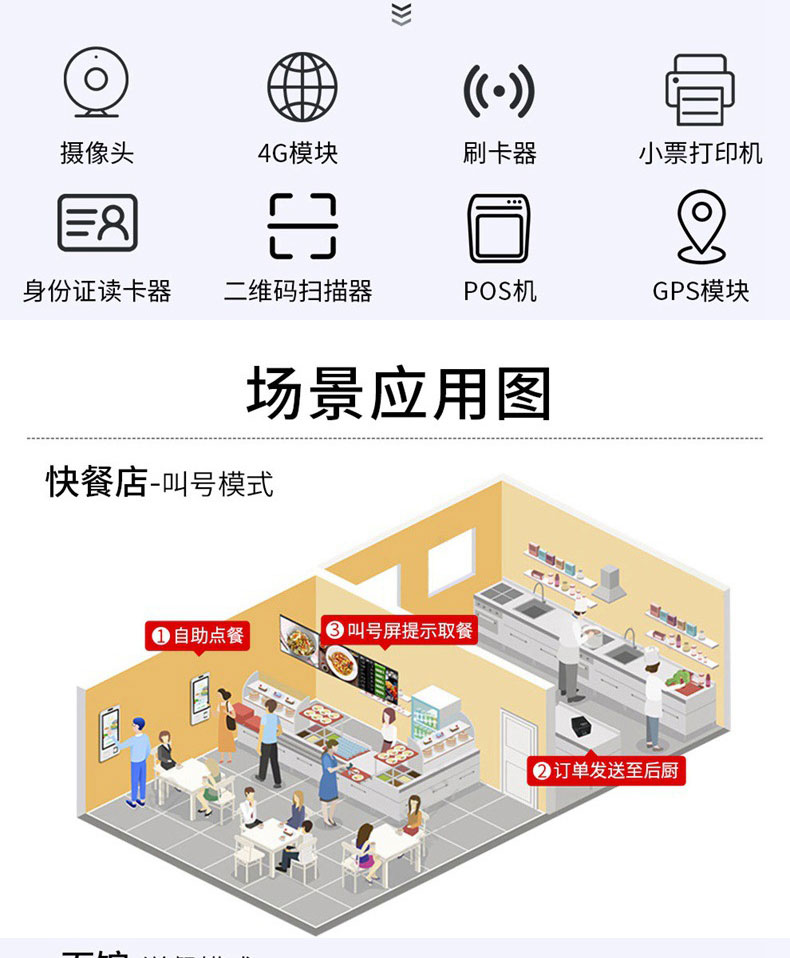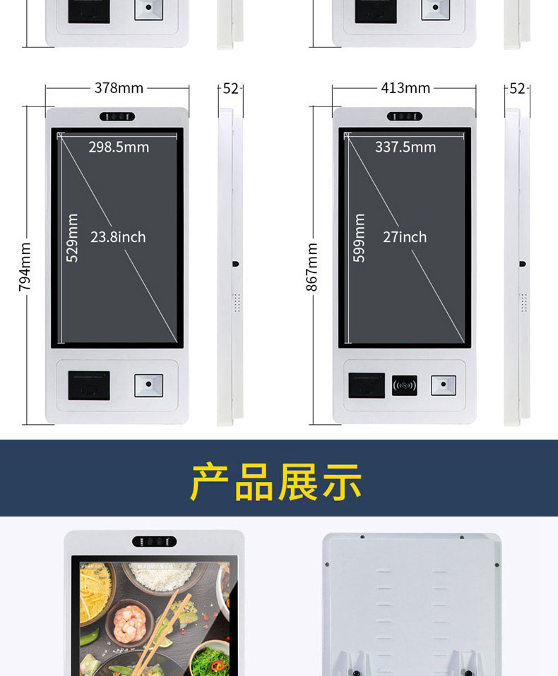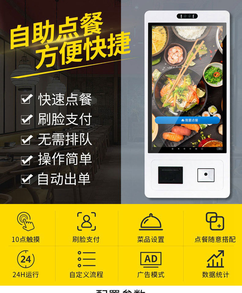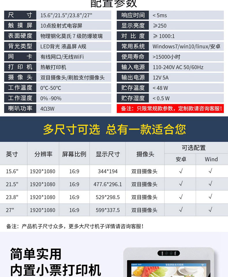 智能多功能收銀電容觸摸一體機人臉識別掃碼打印自助點餐結算終端