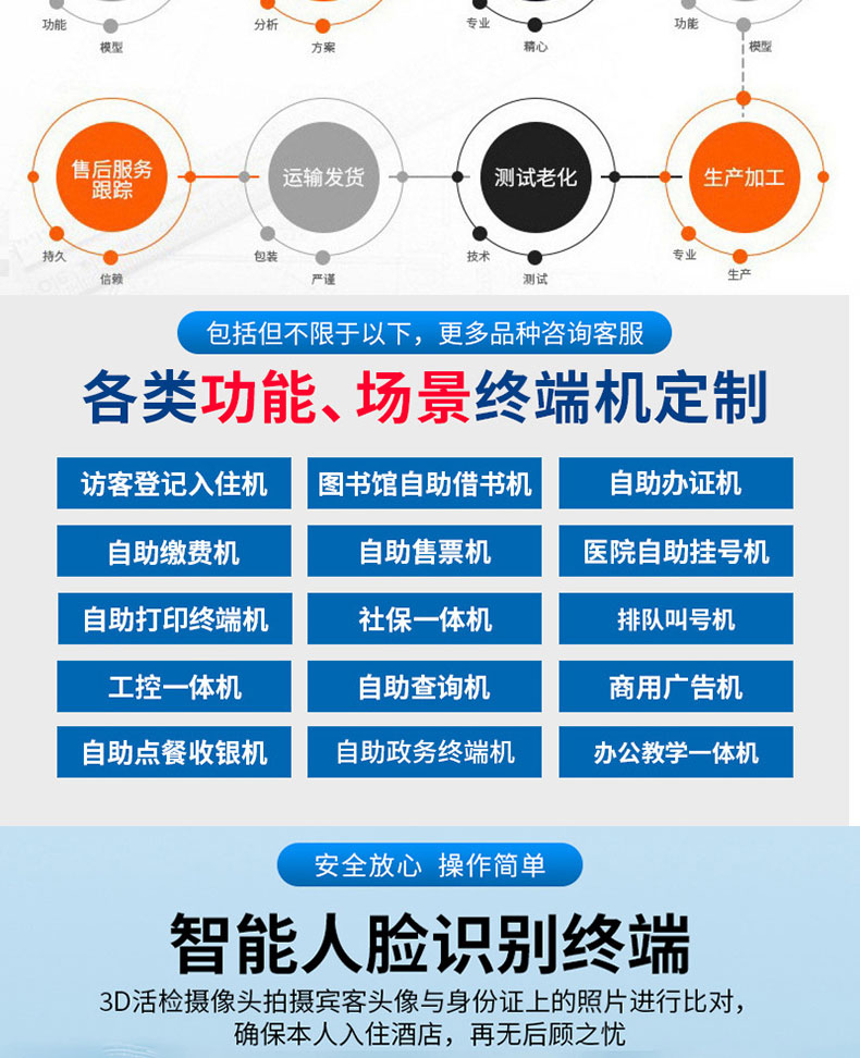 深圳市博奧智能科技有限公司專業提供自助終端機、觸摸查詢一體機、廣告機、液晶顯示器等產品的硬件、軟件研發與設計加工OEM/ODM等一站式服務;我們一直秉承以產品質量為核心、客戶至上、服務共贏為宗旨,為金融、醫療、教育、人工智能、政府工程項目、智慧城市、軌道交通、商業自助服務、廣告傳媒等行業提供質量過硬的產品和優質的服務。