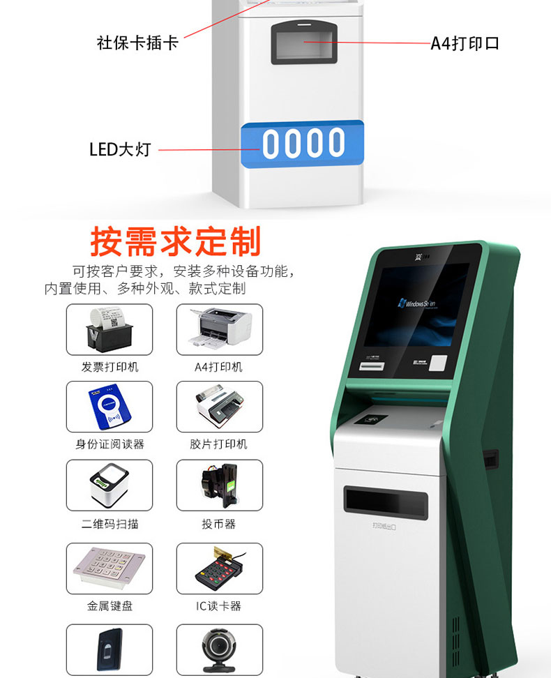 工商醫院大廳社保卡打印取單一體機智能自助終端應用系統開發