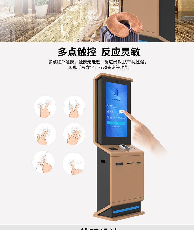 落地立式觸摸一體機(jī)證件登記人臉識別酒店自助入住智能終端系統(tǒng)軟件開發(fā)