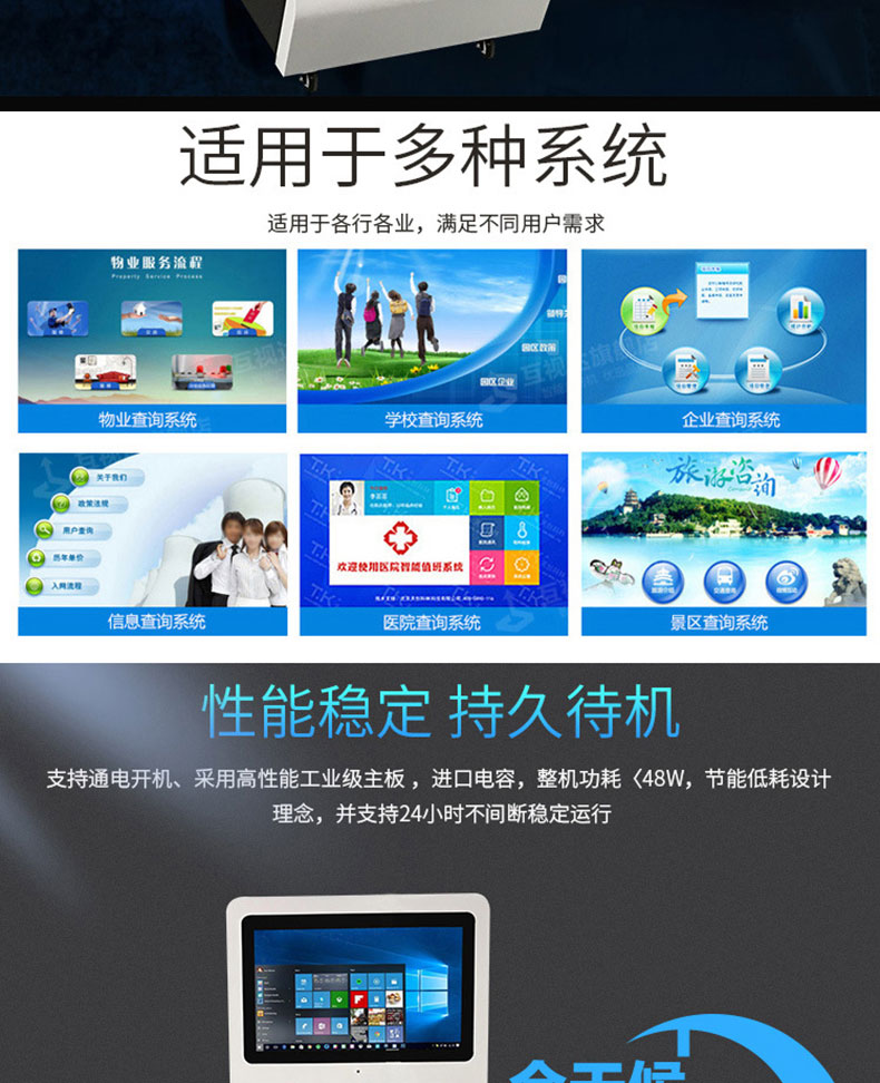 定制實用的自助終端設備,我們是專業。多種定制款式任意選擇,可根據需求定制外觀屏幕尺寸可選,配件數量可選,主機配置可選。