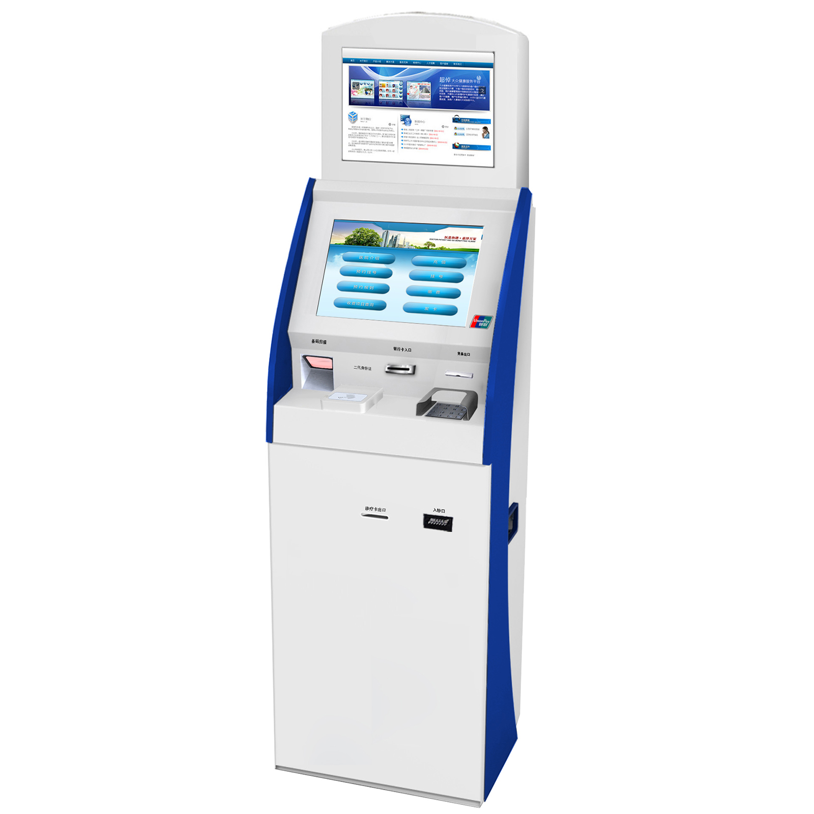 大廳雙屏觸摸一體機定制人臉識別發卡A4打印自助終端系統軟件開發