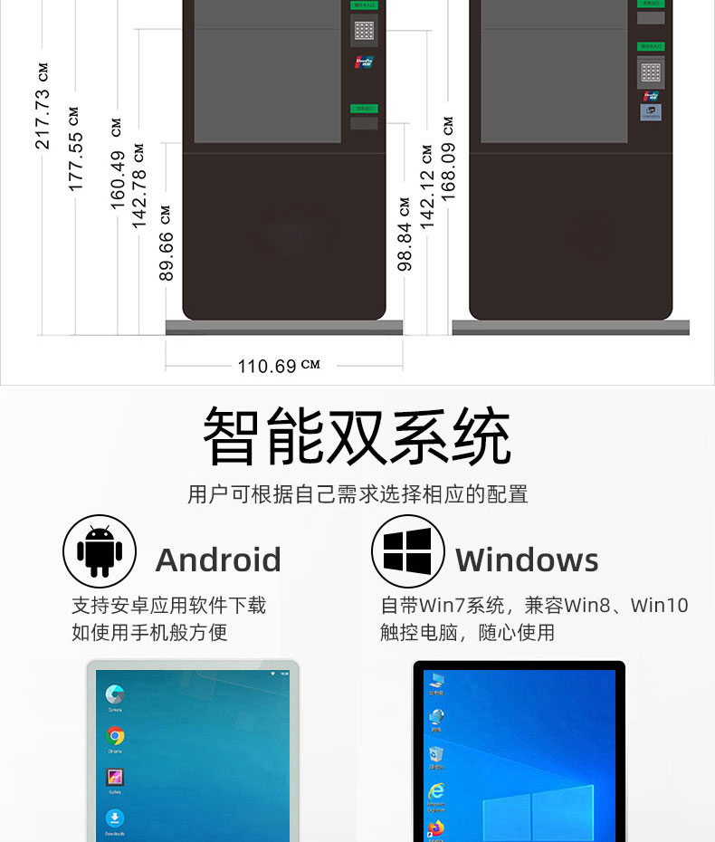 定制實用的自助終端設備,我們是專業。多種定制款式任意選擇,可根據需求定制外觀屏幕尺寸可選,配件數量可選,主機配置可選。
