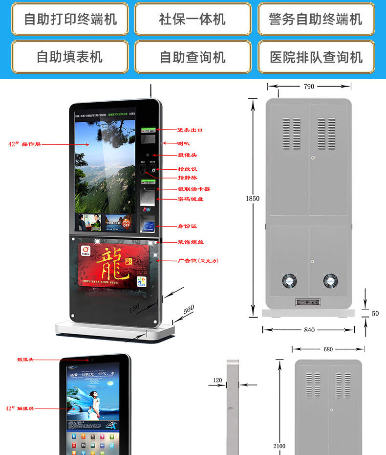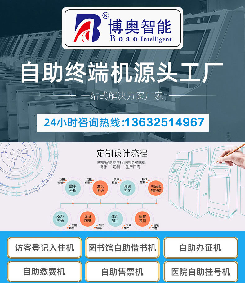專業提供電腦觸控產品、自助服務終端的設計及生產服務,主要產品自助終端機、自助打印機、自助取票機、自助查詢機、自助繳費機、自助發卡機、自助政務一體機,產品使用于各個行業;醫院、學校、銀行、酒店、景區等。。。。。公司擁有專業的生產線,嚴格的質量把控。耐心的咨詢服務團隊及專業的技術負責團體。