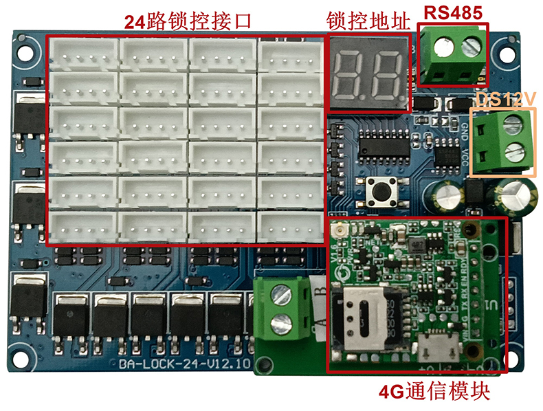 該鎖控板 4G 接口,利用 TCP 協議直接連接云服務器,支持多種電控鎖,支持鎖信號反饋,支持