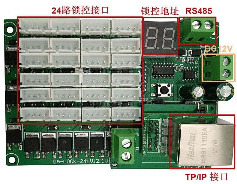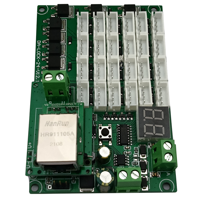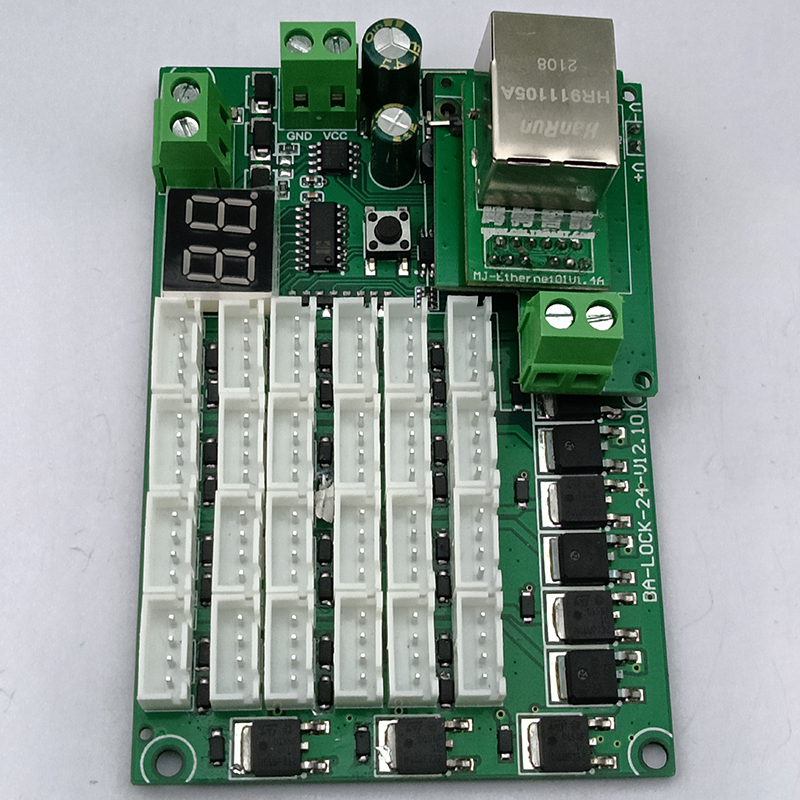 24路鎖控板又為電子鎖控制器,主要用來控制格子柜門電子鎖的開與鎖,可以控制24路格子柜門,管理系統通過TP/IP通信協議,實現電腦串口助手發送數據開鎖和獲取箱門狀態反饋!