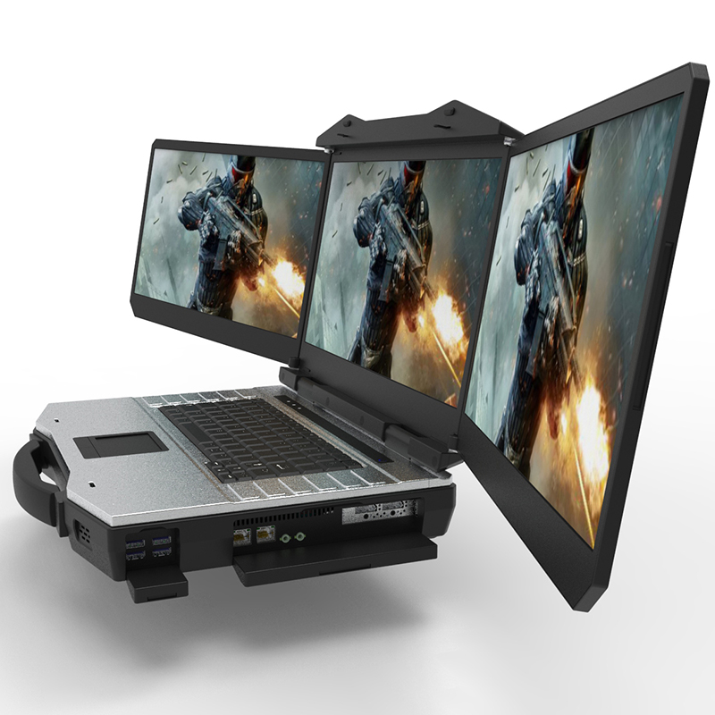 便攜式三屏加固筆記本計算機采用工業級設計,全鋁美合金機身CNC一體成型,外觀精美貌,體積精巧,方便攜帶;本產品集成了豐富的I/ O擴展接口, 良好的散熱系統, 配備高性能15 . 6 "高清液晶屏,三屏顯示功能, 該產品具有強大的擴展功能, 還能不同需求提供定制服務。可方便集成第三方的軟件和硬件。是軍隊、公共安全、現場服務和其他特殊應用領域的最佳解決方案。