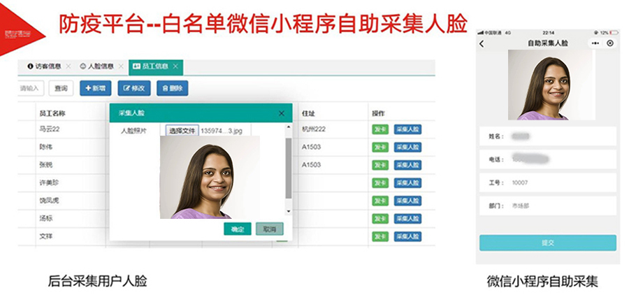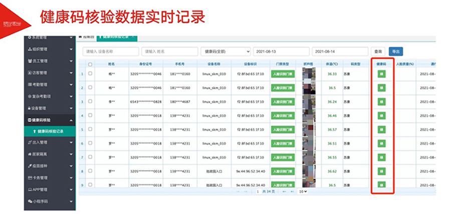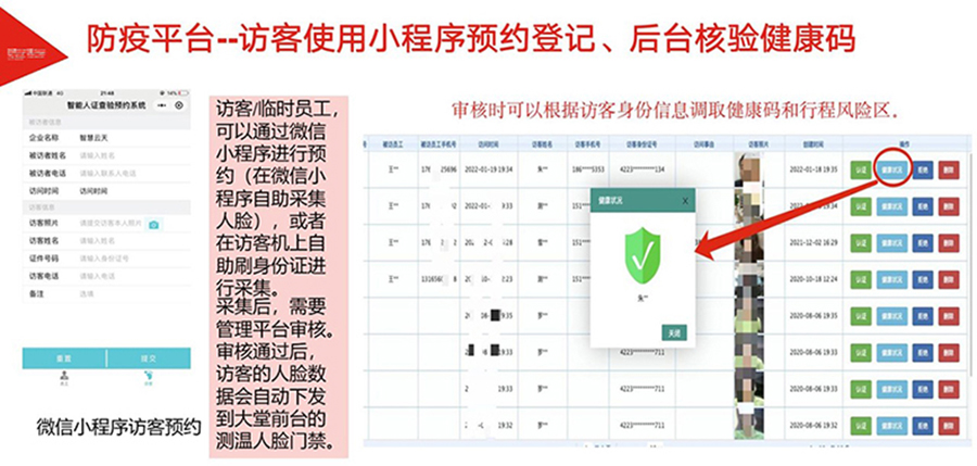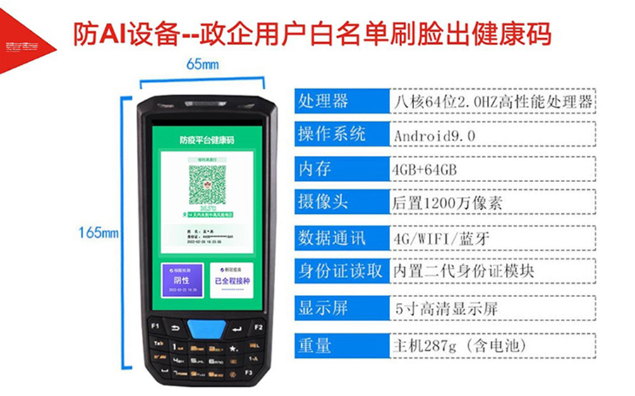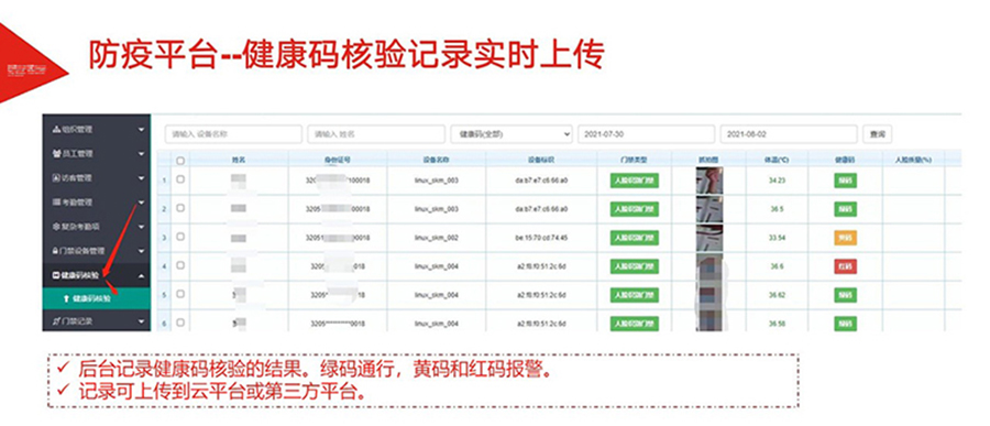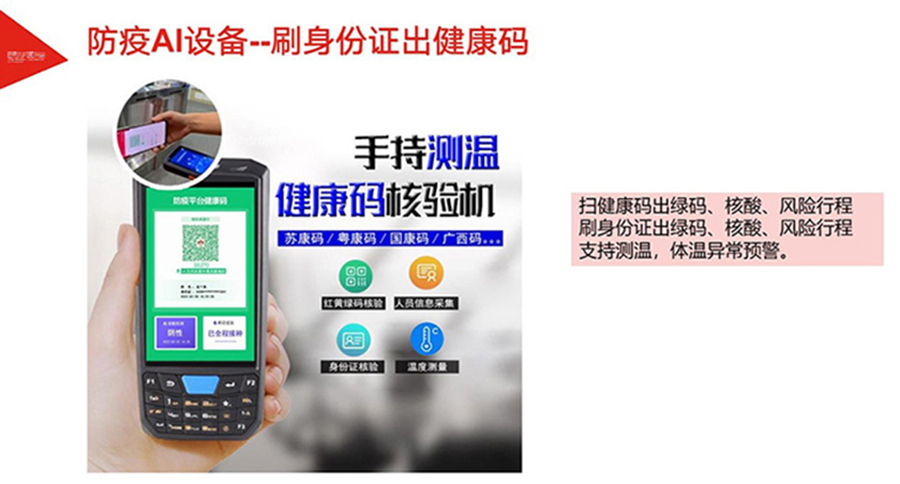 為加速各地落實“ 健康碼 ”助力疫情防控、一碼通行、科學防疫,健康碼測溫人臉識別一體機,基于人臉識別算法和紅外熱成像測溫算法,可與國康碼、及各地健康碼平臺相對接,實現“ 證、碼、臉 ”三合一,保證人臉精準測溫,實時篩查通行人員健康情況,讓公共安全疫情防控更到位。該產品廣泛適用于辦 公、酒店、寫字樓、校園、商場、社區等公共服務場所,助力疫情防控,實現科技防疫。