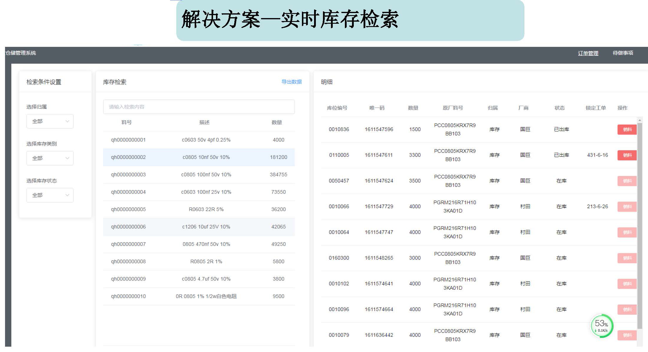 根據多年工廠管理經驗,開發出智能倉儲亮燈貨架及倉儲管理系統軟件??梢蕴峁┤珗鼍岸喾N狀態物料的智能管控,包括客供料,自購料,客自供料一體的來料管理,臨時增加訂單,臨時取消訂單和臨時修改訂單數量的生產計劃安排。可以對接ERP.MES系統,并完善系統中存在的不足。