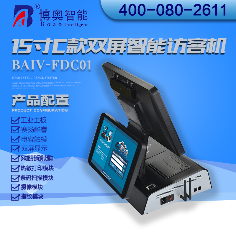 ? ? ??15寸C款雙屏智能訪客機利用智能信息化訪客登記管理系統,將目前手工填寫出入登記管理、電話咨詢被訪人等傳統方式轉變為高科技的計算機化、信息數字化處理,消除了手寫登記填寫時間長,容易出錯,信息缺失虛假多,不易保存,信息查詢困難等種種弊端;訪客登記管理系統能夠準確快速的對來訪人員的證件、圖像、指紋等信息進行識別登記并保存,以便日后查詢,同時利用聯動功能,可以對進出車輛自動識別登記。
