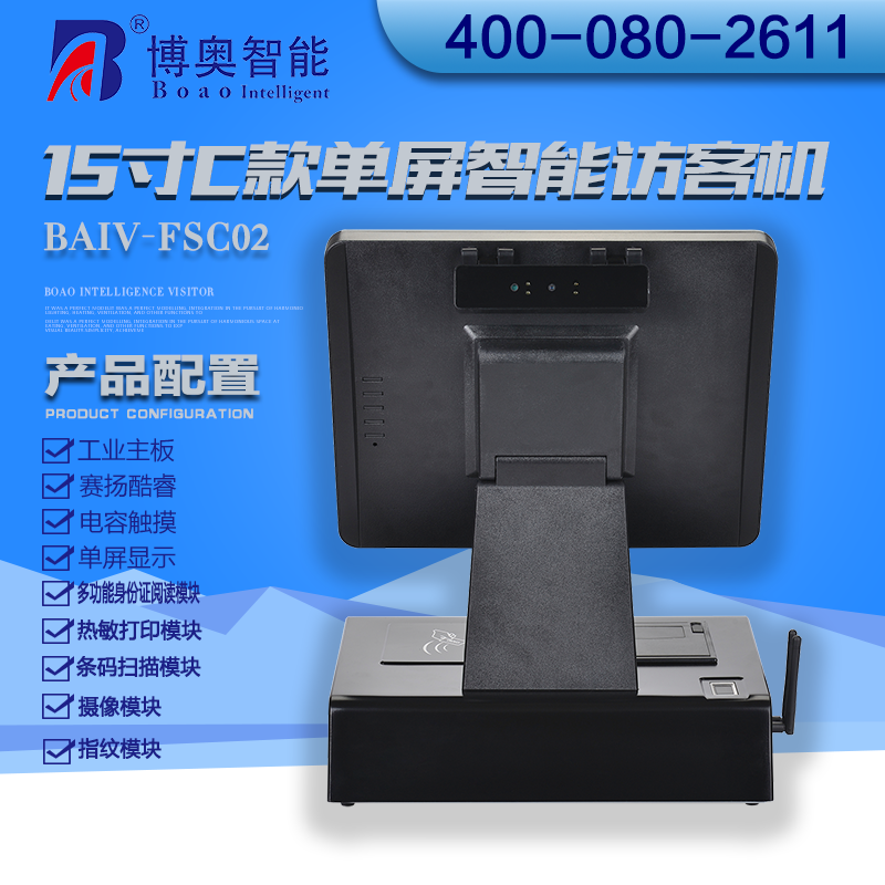 ? ? ? 15寸C款單屏智能訪客機控制核芯是博奧智能自主研發的工控主板,達到工業級要求