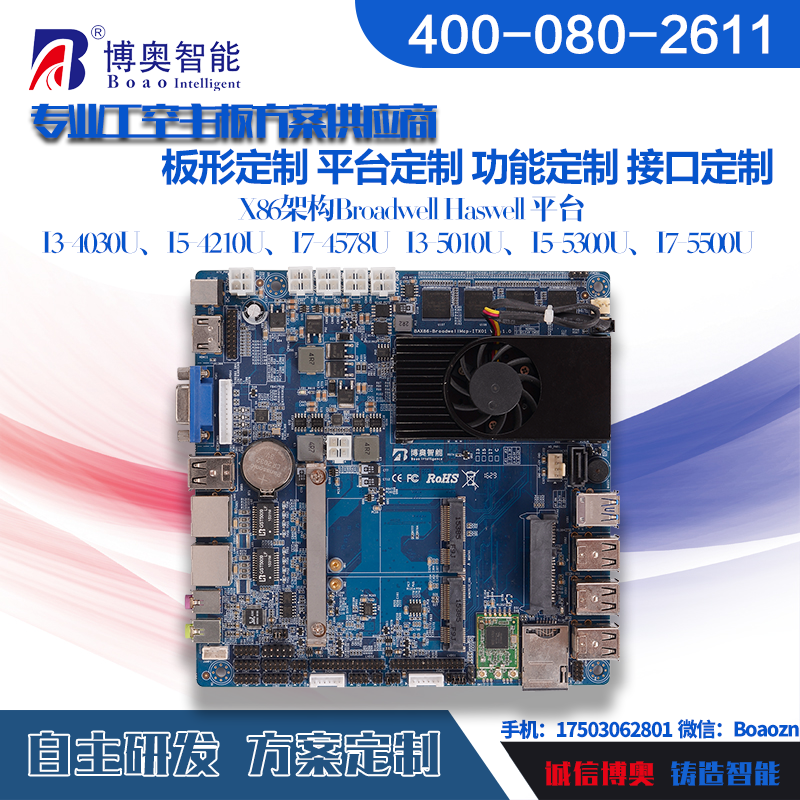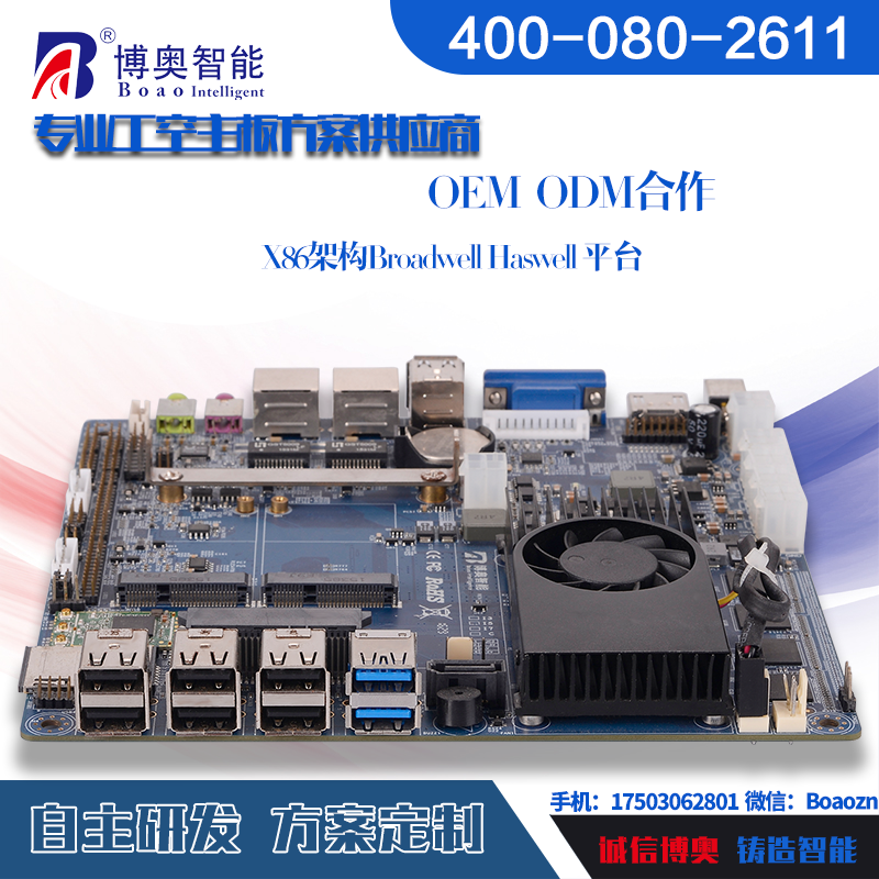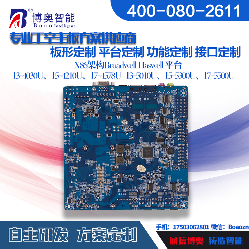 Intel Haswell和Intel Broadwell平臺主板是為我公司訪客機專用而且開發的工控主板方案,主板尺寸170mmX170mm,八層PCB板,工業級設計,它具有功能強大,集成度高,低功耗,高性能,多接口的特點,主板集成了12個USB接口 ,6個COM口,雙通大功率功放,最高支持15W,板貼4G/8G內存及WIFI+BT功能,雙插針LVDS1、LVDS2,同時主板配有兩路DC24V輸出,兩路DC12V輸出,一路DC5V輸出;?Intel Haswell和Intel Broadwell平臺提供板形(標準板卡、非標板卡)、功能接口等定制。