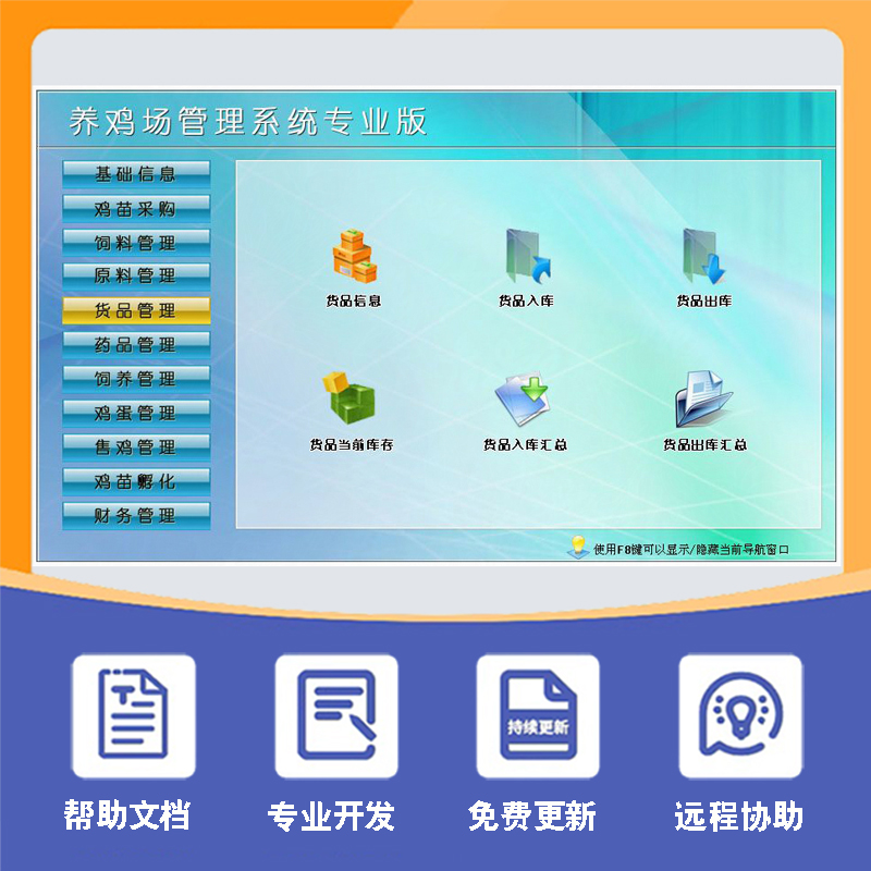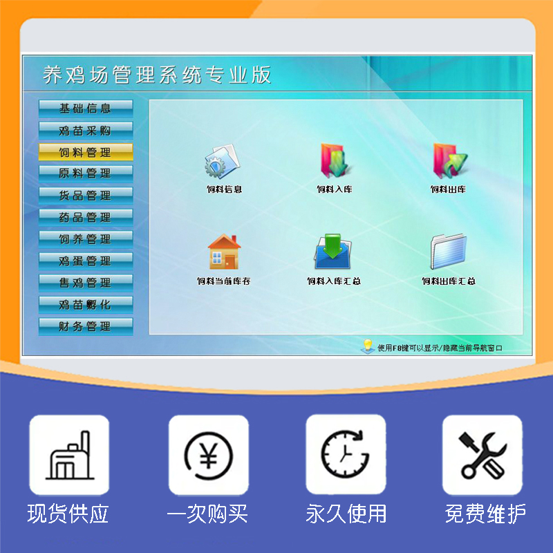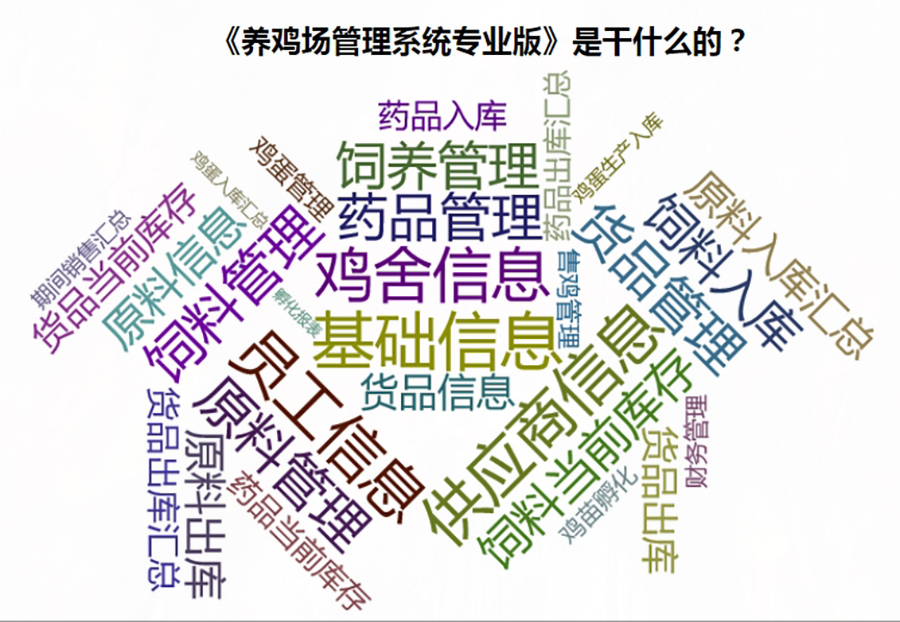 《養雞場管理系統專業版》是一款適用于中小型養雞場的管理軟件。主要包含基礎信息、雞苗采購、飼料管理、原料管理、貨品管理、藥品管理、飼養管理、雞蛋管理等功能。本管理系統多處具有快速輔助錄入功能,操作簡單,易學、易用;處理功能高效強大,是協助您的好幫手!