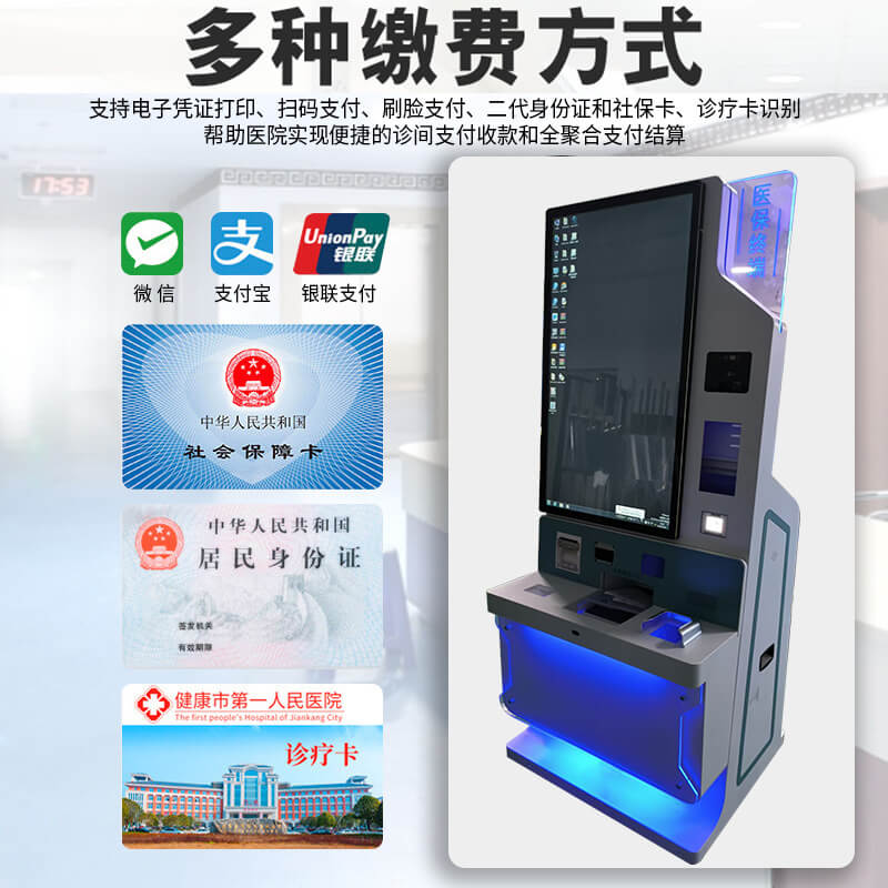 32寸醫保自助終端機是一款專為醫保服務場景打造的多功能自助設備,集多種核心模塊于一體,以穩定性能、全面功能和安全設計,為用戶提供高效、便捷的醫保相關自助服務,廣泛適用于醫院、醫保服務中心等各類公共服務場所。